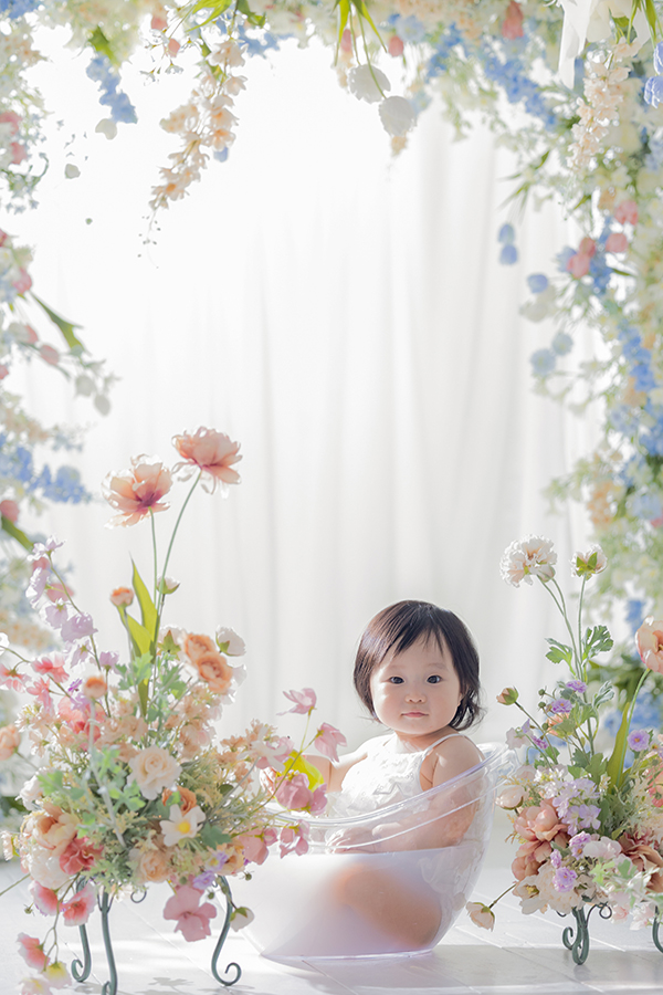 むちむちの手足や、水を触る仕草など、赤ちゃんならではの可愛い表情がたっぷり残せます。