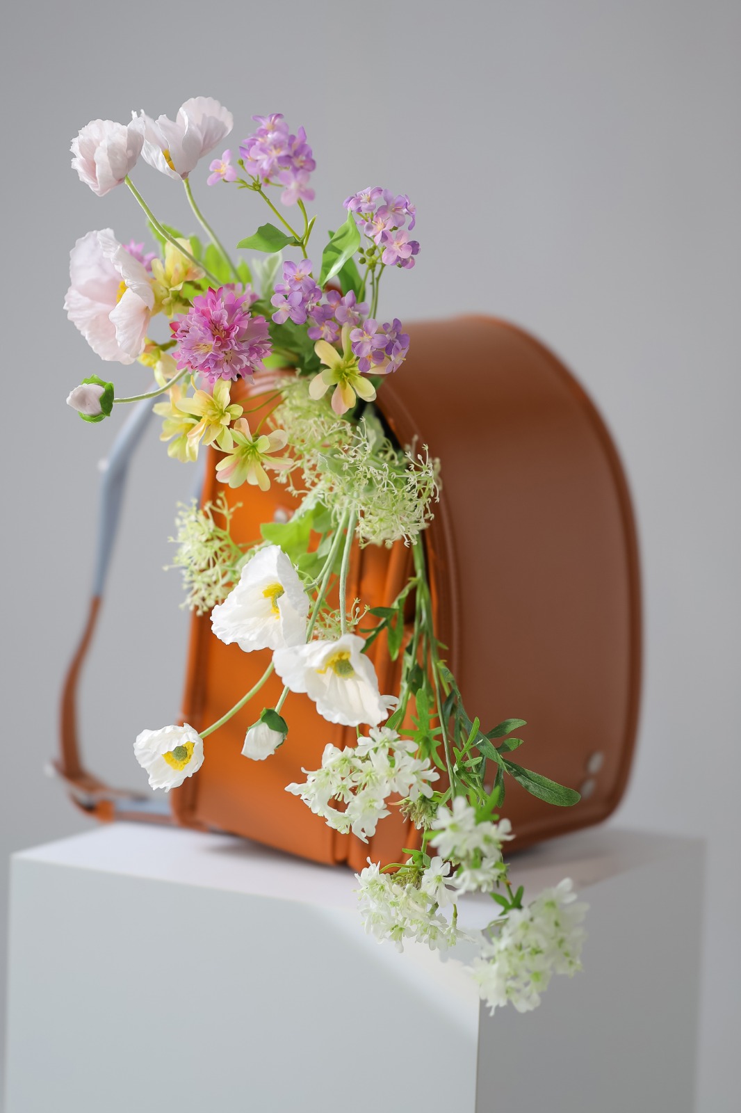 ノーブレムでは、ランドセル撮影をより特別な一枚に仕上げるため、オリジナルのアーティシャルフラワーを使用したアレンジを2026年2月から全店舗で無料でご用意いたします。