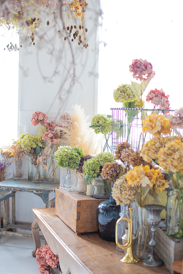白を基調としたやわらかな空間に、ふんわりと広がる花々。